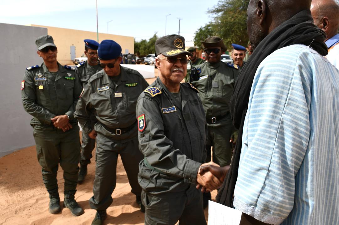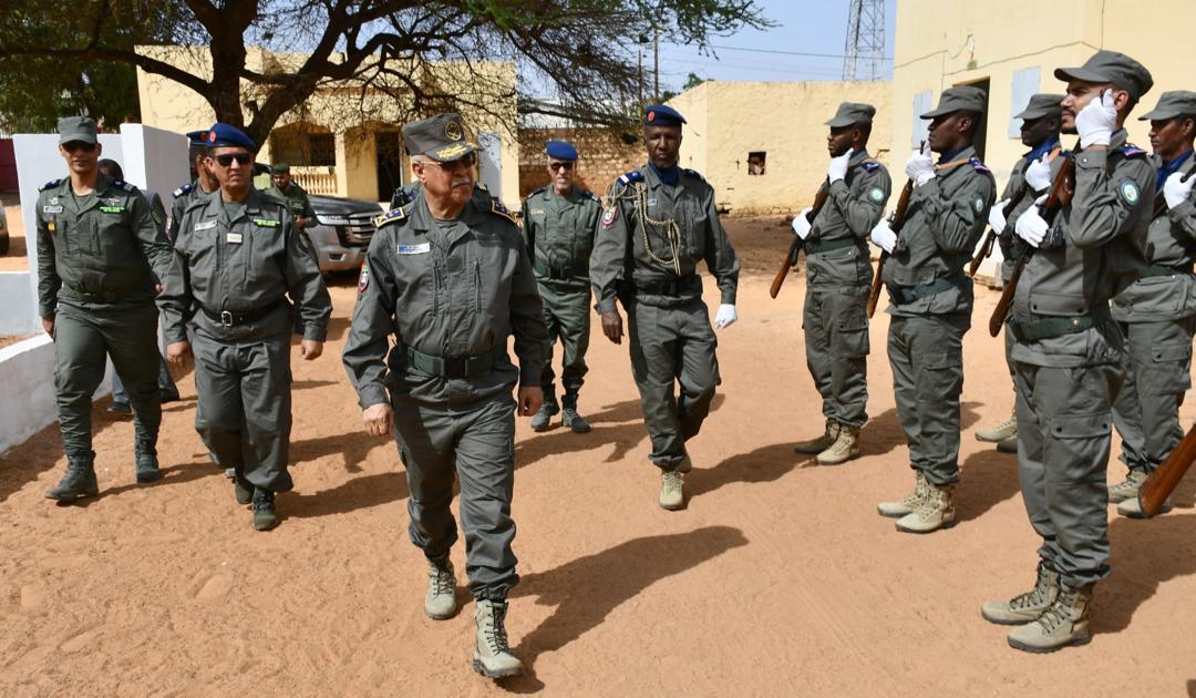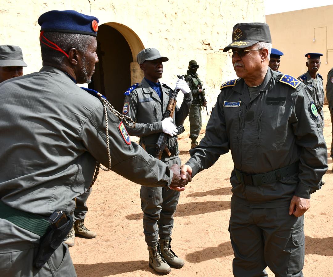 لعيون - 2026/02/04 -أدى الفريق إبراهيم فال الشيباني قائد أركان الحرس الوطني زيارة تفقدية لمقر قيادة التجمع الجهوي رقم 2 بمدينة لعيون في ولاية الحوض الغربي.