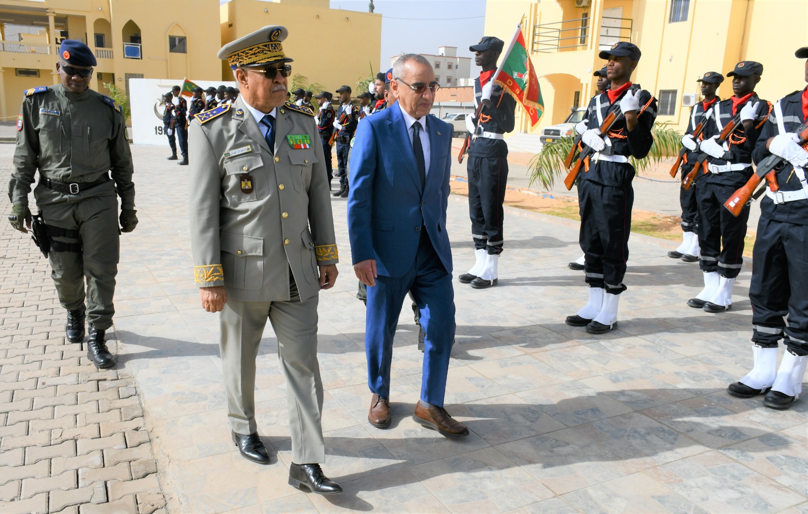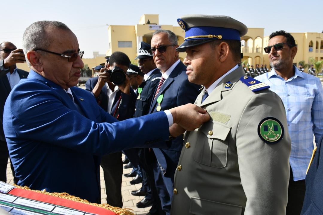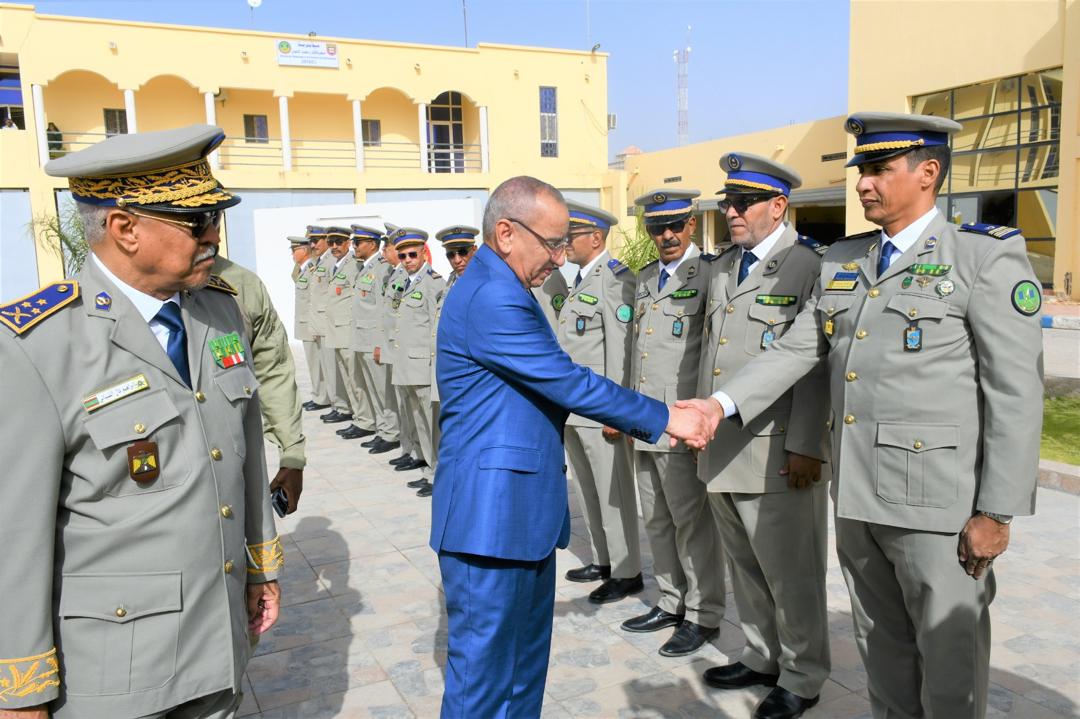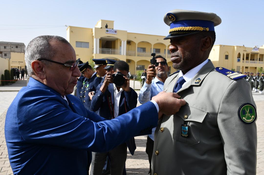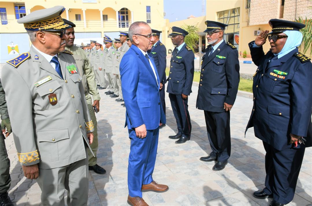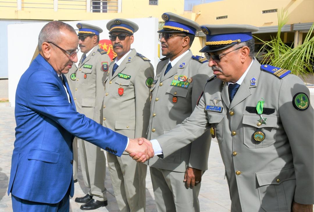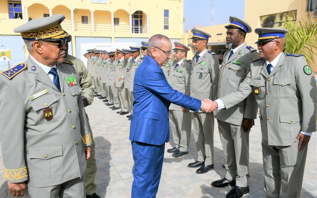 وتميز الحفل الذي أقيم بهذه المناسبة بحضور قائد أركان الحرس الوطني، الفريق إبراهيم فال الشيباني الشيخ احمد، برفع العلم الوطني واستعراض وحدات من الحرس الوطني والشرطة الوطنية والمندوبية العامة للأمن المدني وتسيير الأزمات أدت لهما تحية الشرف قبل أن يحيي معالي الوزير عددا من المديرين بقيادة أركان الحرس الوطني والإدارة العامة للأمن الوطني والمندوبية العامة للأمن المدني وتسيير الأزمات والمسؤولين المركزيين بوزارة الداخلية وترقية اللامركزية والتنمية المحلية.