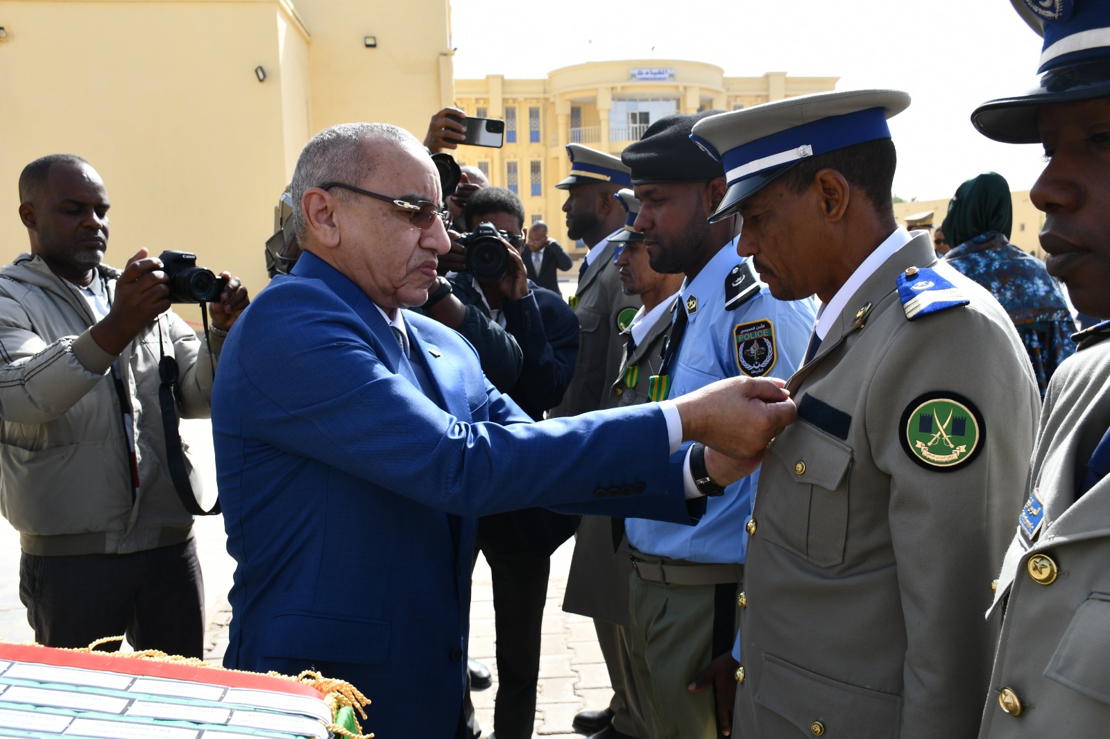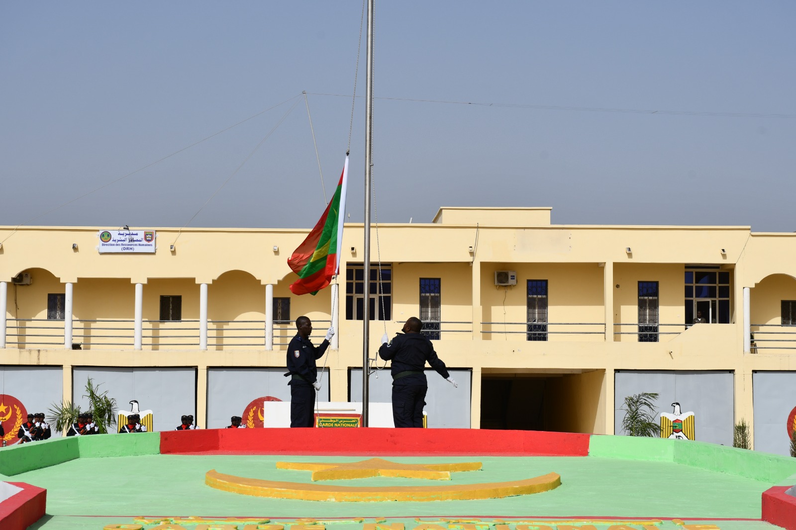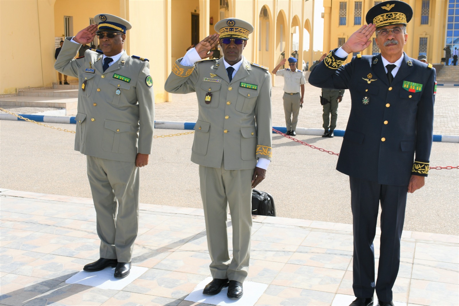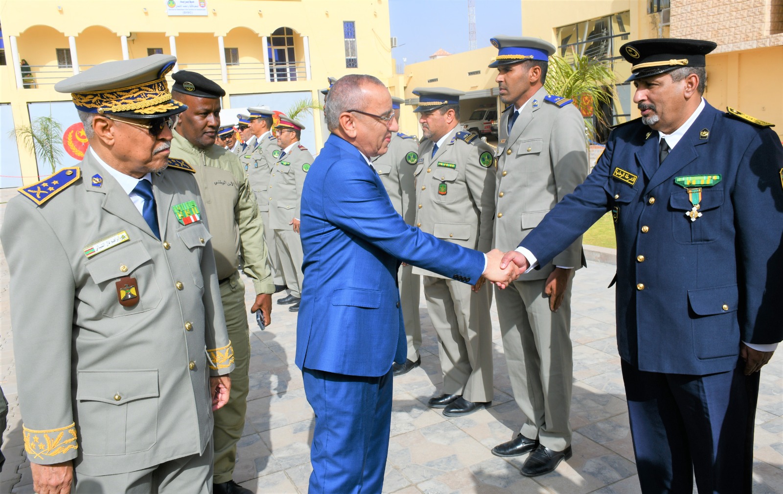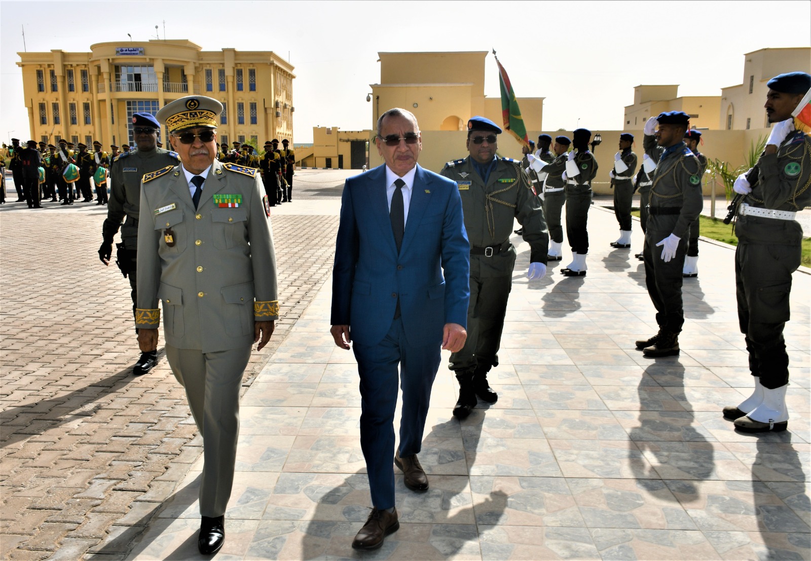 وتميز الحفل الذي أقيم بهذه المناسبة بحضور قائد أركان الحرس الوطني، الفريق إبراهيم فال الشيباني الشيخ احمد، برفع العلم الوطني واستعراض وحدات من الحرس الوطني والشرطة الوطنية والمندوبية العامة للأمن المدني وتسيير الأزمات أدت لهما تحية الشرف قبل أن يحيي معالي الوزير عددا من المديرين بقيادة أركان الحرس الوطني والإدارة العامة للأمن الوطني والمندوبية العامة للأمن المدني وتسيير الأزمات والمسؤولين المركزيين بوزارة الداخلية وترقية اللامركزية والتنمية المحلية.