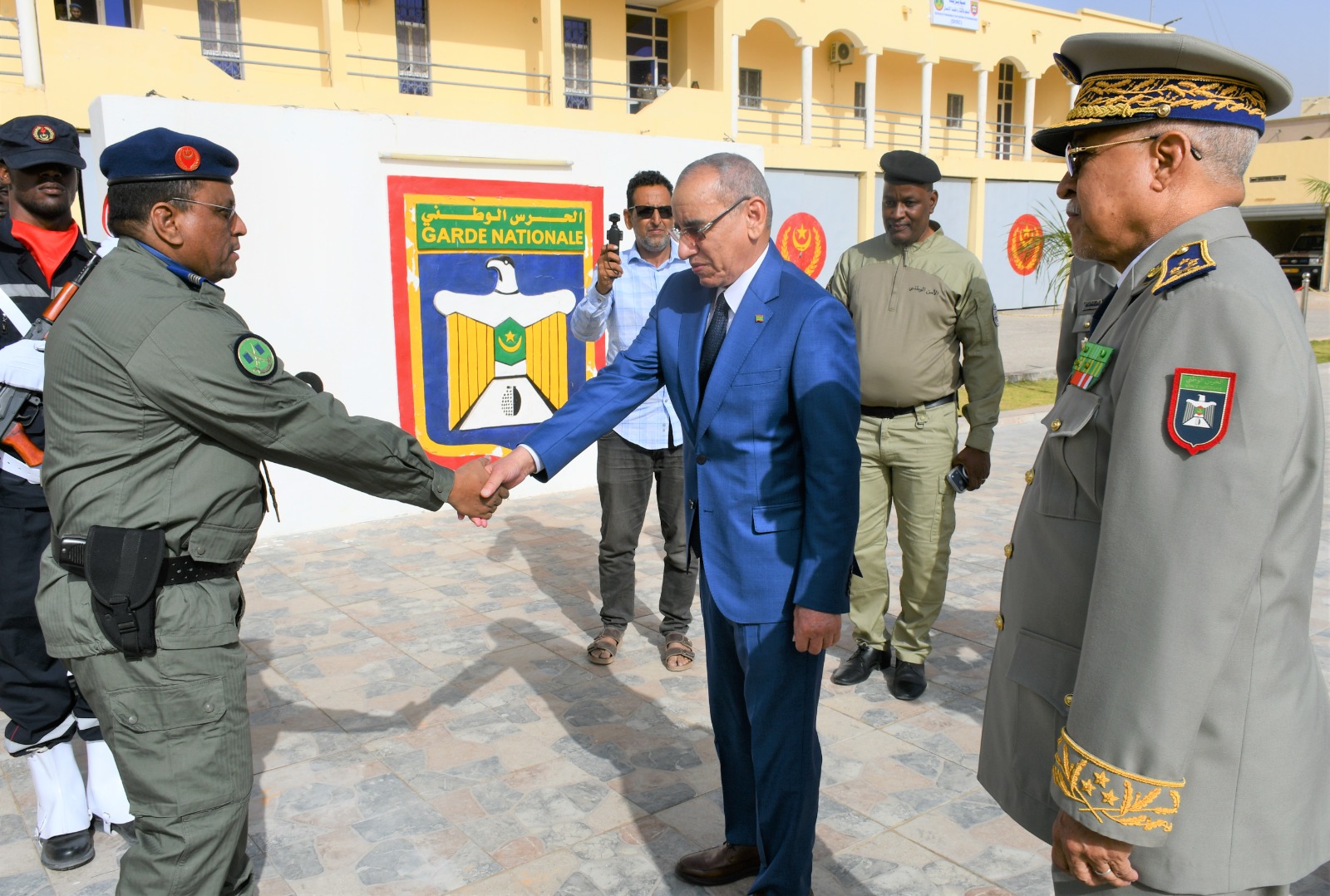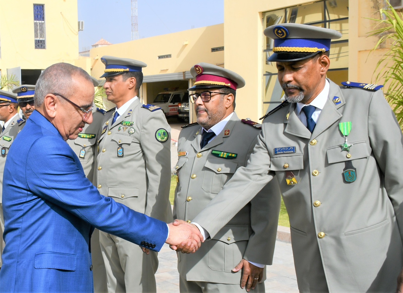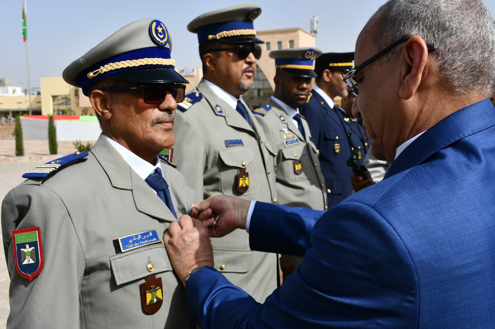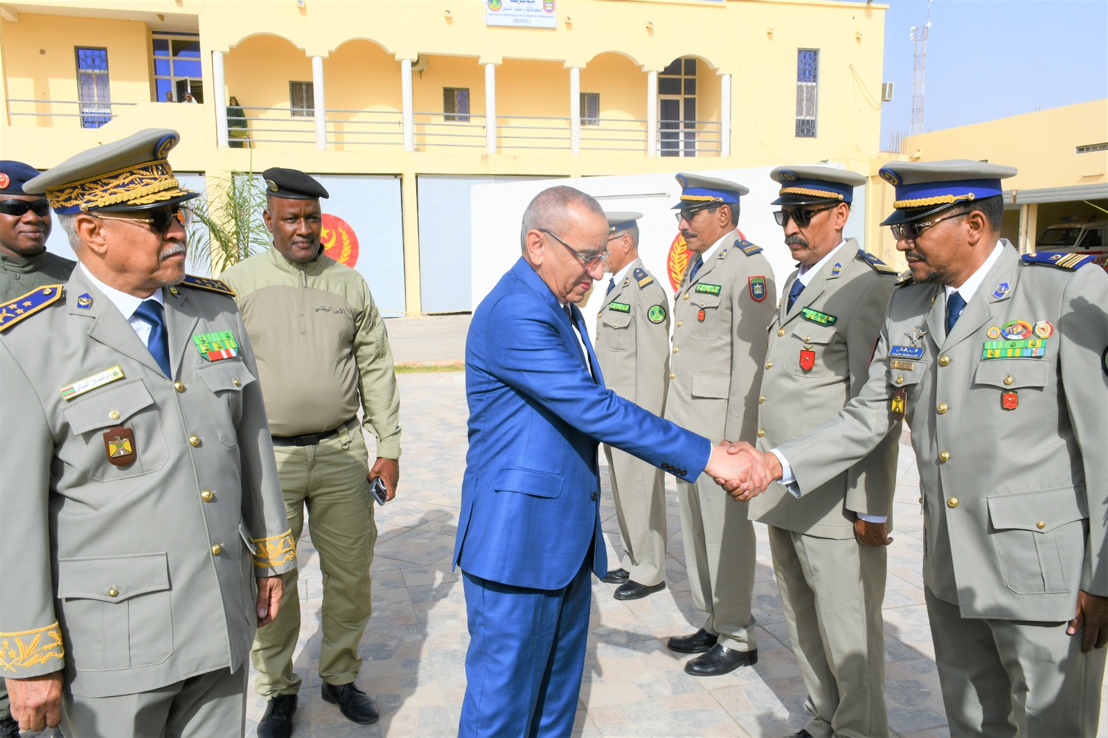 وتميز الحفل الذي أقيم بهذه المناسبة بحضور قائد أركان الحرس الوطني، الفريق إبراهيم فال الشيباني الشيخ احمد، برفع العلم الوطني واستعراض وحدات من الحرس الوطني والشرطة الوطنية والمندوبية العامة للأمن المدني وتسيير الأزمات أدت لهما تحية الشرف قبل أن يحيي معالي الوزير عددا من المديرين بقيادة أركان الحرس الوطني والإدارة العامة للأمن الوطني والمندوبية العامة للأمن المدني وتسيير الأزمات والمسؤولين المركزيين بوزارة الداخلية وترقية اللامركزية والتنمية المحلية.