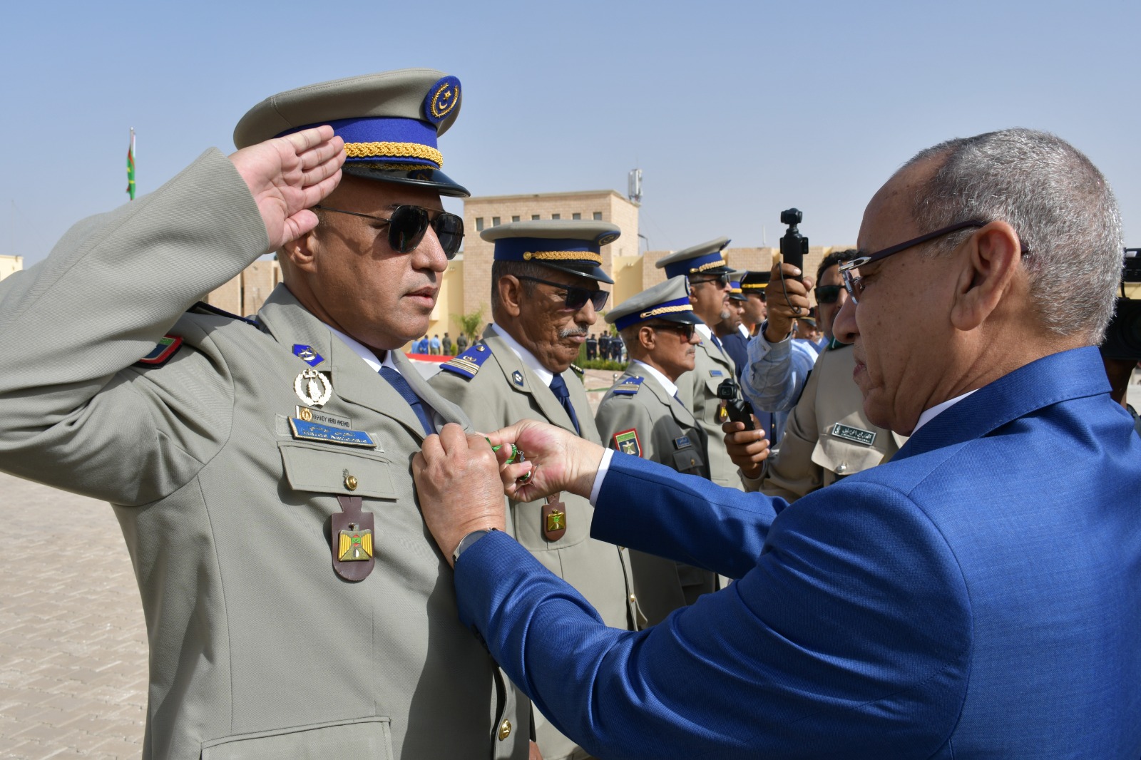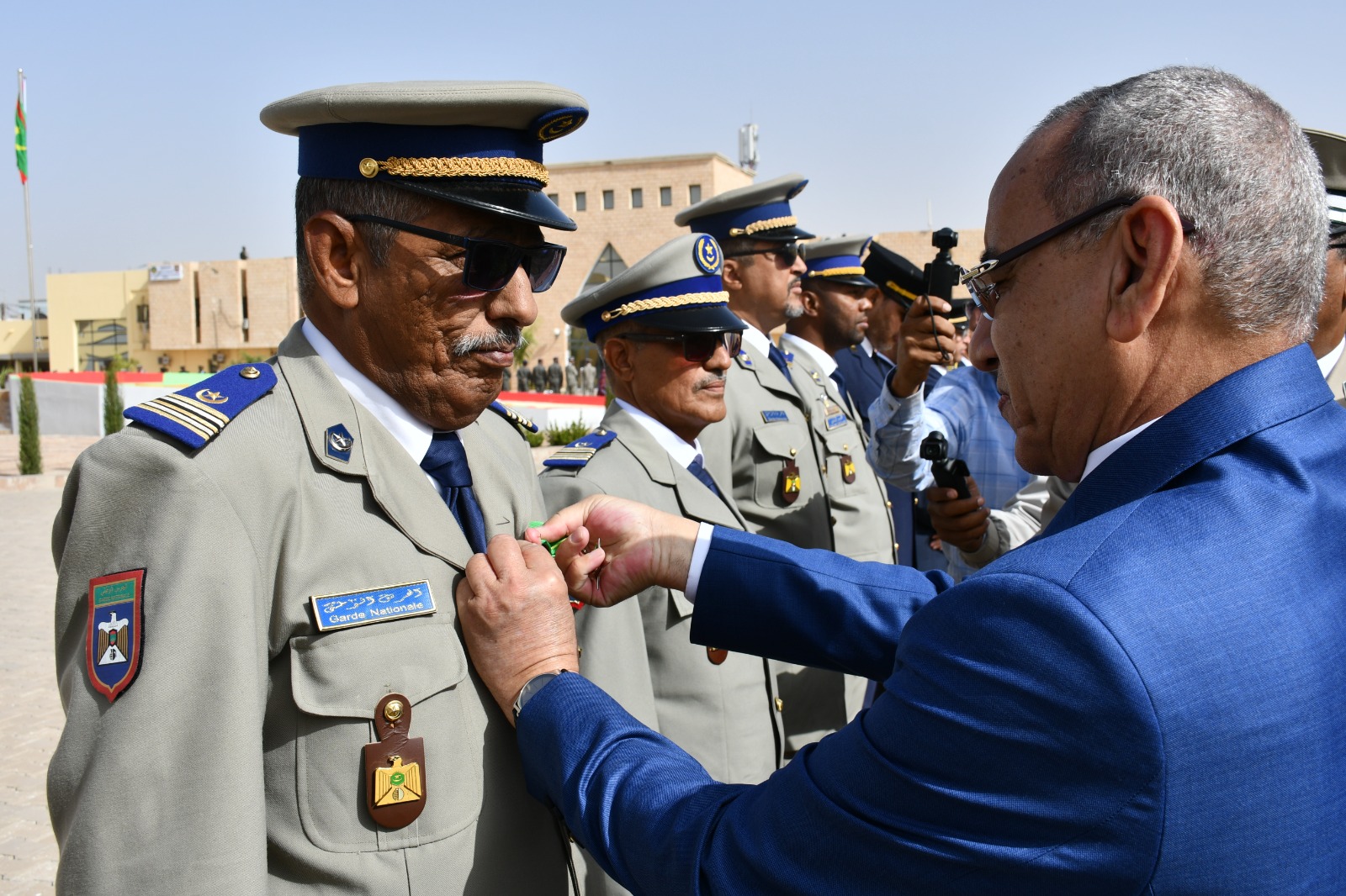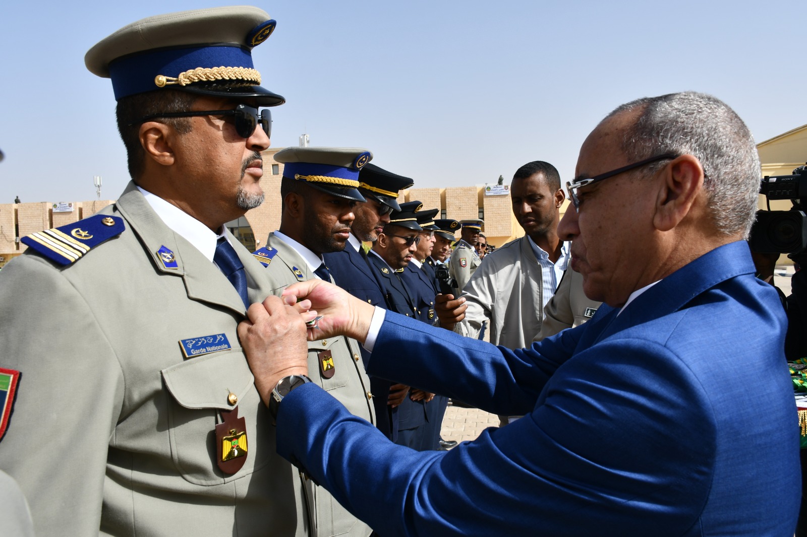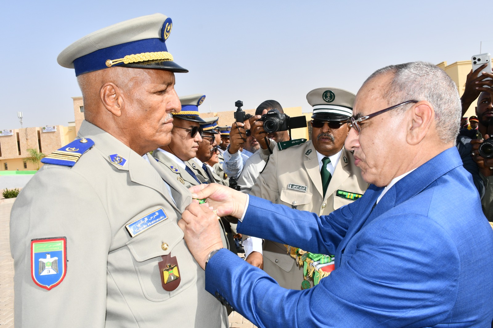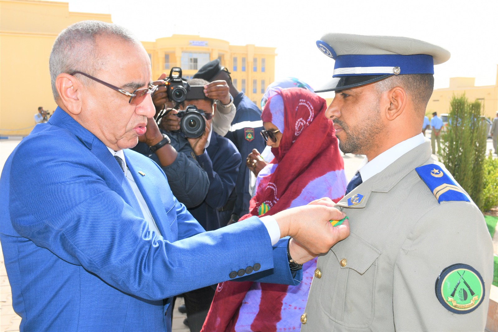 وتميز الحفل الذي أقيم بهذه المناسبة بحضور قائد أركان الحرس الوطني، الفريق إبراهيم فال الشيباني الشيخ احمد، برفع العلم الوطني واستعراض وحدات من الحرس الوطني والشرطة الوطنية والمندوبية العامة للأمن المدني وتسيير الأزمات أدت لهما تحية الشرف قبل أن يحيي معالي الوزير عددا من المديرين بقيادة أركان الحرس الوطني والإدارة العامة للأمن الوطني والمندوبية العامة للأمن المدني وتسيير الأزمات والمسؤولين المركزيين بوزارة الداخلية وترقية اللامركزية والتنمية المحلية.